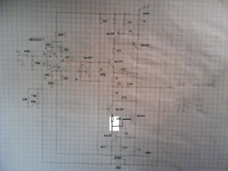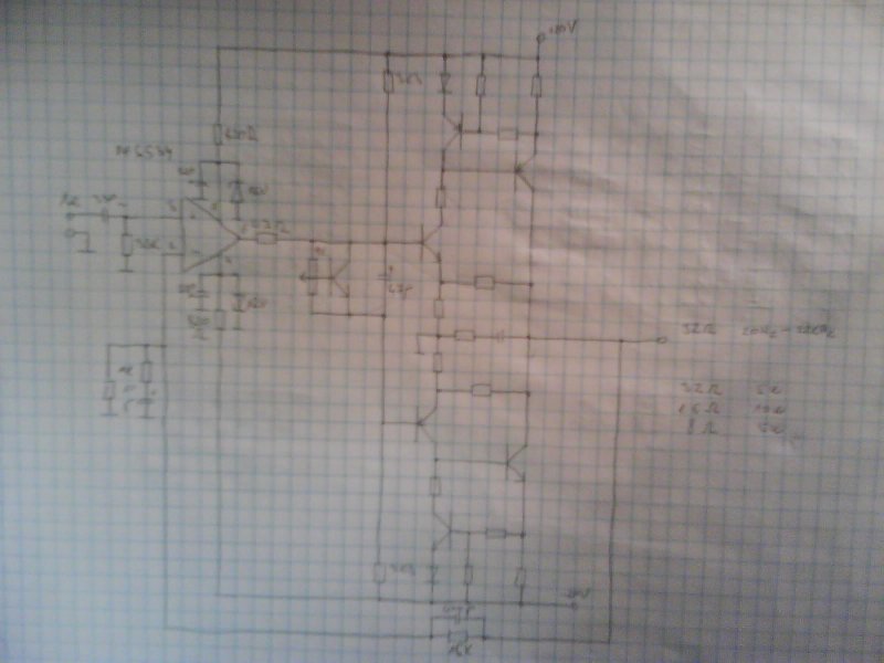 Félig-meddig kész az erősítő az alapja a közismert Texas kapcsolás, csak zárlat ÉS túlterhelésvédelem is van benne. +/- 20V lesz a táp, 32 Ohmon 5W, 16 Ohm 10W, és ez alatt csökken.