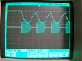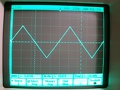 A második képen még 390kHz-en ki lehet vezérelni 18.7Vpp-ig úgy, hogy szemre nem torzít... ez szerintem nem olyan rossz. 12MHz-en már 800mVpp-nél torzít vagy 20%-ot, de ezt már a denevérek sem hallják meg. Itt körül van a -3dB-es pontja is. Negyedik kép a 100kHz 18Vpp. Hát ennek sajnos ilyennek kell lennie, ha aszimmetrikus fokozatokat használunk. Nem tudom mennyire befolyásolja a hangminőséget, de szerintem... igen. A szimmetrikus felépítésű erősítők jobban szoktak szólni, de most HTB akartunk (-tam?). Kisebb jelszintnél már szép a 100kHz és még az is lehet, hogy nem lesz ez annyira rossz (most kicsit bizonytalan vagyok? Vagy mégsem?). Aztán még egy háromszögjel... csak úgy... És végül az 0.05 Hz-es négyszögjel átvitel, ha már egyszer DC csatolt... És még idefért a 0.02 Hz-es is nyolcadiknak, mert mást ma nem mértem rajta, mert ennyi elég egy napra...