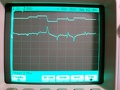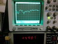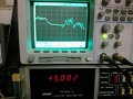 Reggel kimenetem a műhelybe, bekapcsoltam és bejöttem kávét főzni, hogy (szó szerint) ne csapjam a szelet neki. Ez látható az első képen. (A szkópon osztó nélküli a mérővezeték és majd a továbbiakban is, 2mV/osztással mérem a driftet.) A 2-4. képen ventilátoros hősugárzóval melegítem a panelt, kb. 70 fokos levegőt fújok rá míg 50 fokot nem mutat a hőmérő szenzorja a nyákon (nem akarnám elolvasztani a mérőfejet). Van jelentősége, hogy közben mutogatom a negatív tápfeszt, mert a ventilátor a tápegységet is elhangolja és - mint később kiderült - ezzel éppen kompenzálja a kimeneti offset "elmászását". Az első 250 sec-ig fűtöm, majd magára hagyom hűlni. Elég furcsa "cirádák" alakulnak ki az elkövetkezendő 6-7 percben, de összességében +/-2mV-nál nincs nagyobb DC szint a kimeneten. A 1934-es képen a pozitív tápot változtatom +/- 2V-tal, tehát 13-17V között. Több, mint 60dB a tápelnyomás lassú változásokra nézve (hosszú idejű stabilitás). A negatív tápelnyomás ehhez képest elég lesújtó képet mutat. Mégiscsak bevetettem a jó öreg előrecsatolást és így már szerintem elfogadható lett az eredmény (CAM1936).