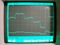 ![]() Pöccre indult, nem kellett csereberélni, kókányolni semmit. A labortápról jár +/-15V-ról. A szűrőkondin +/-13V van, tehát 20mA az áramfelvétele. A kimeneti fokozat nyugalmi árama 10.3 mA-re állt be és tartósan ennyi is maradt. Az offset poti -123/+38mV között szabályoz. A kimeneti DC szint stabilitással még nem foglalkoztam, de úgy néz ki stabilan tartja +/-1mV-on belül (bekapcsolás után néhány percig figyeltem és fújkáltam, mert a szám kéznél volt). Első körben megnyugtattam magam, hogy a digitális HP ugyanazt méri, mint a Tektronix, de jobb a képminősége és százszor többet tud (de a Tektronix-et is szeretem). Ez a két kép mutatja a kompenzálatlan esetet. Nem gerjed kompenzáló kondi nélkül sem, de beleng a négyszög, mint a szimulátorban is tette. A következő szkóp fotó a 3.3pF-es Miller kondi hatását mutatja. Nem akartam nagyon lelassítani a nagyjelű fokozatot ezért maradtam annál amit a CM is mutatott. A CAM1916-on (800 kHz-es négyszög átvitel) a 10pF-es LAG kompenzációt is betettem. Próbálkoztam más értékekkel is mindkét helyen, de így volt a legszebb négyszög átvitel ahogy a CM is mutatta. Utolsó fotón felül a bemeneti, alul a kimeneti jelalak.