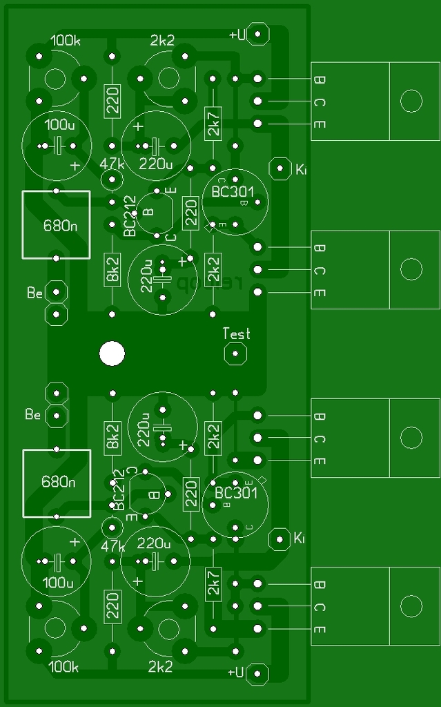 A gipsz hó közepe táján kerül le a kezemről, így készülök a folytatásra. Régen, ha panelt terveztem, mire meglettem vele, bent maradt az alkatrészek helye a fejembe, és rajz nélkül rakhattam fel őket a helyükre. Azonban azóta jelentősen fejlődtem, mert ehhez már jobb, ha nézegetem a rajzot. Figyelembe véve aktuális adottságaimat elkészítettem a szükséges dokumentációt, fedőneve: apuska-puska. Ezt, ezeket kinyomtattatom magamnak a továbbiakhoz. Még nem teljes, de alkalmas tovább-gondolásra, 3D-s módosításra. Főleg a kimeneti kicsatoló, ami még nem teljes bennem az elhelyezés szempontjából. A Gate becsatolók használhatósága esetén a kapcsolók mechanikus közösítést kapnak, ami rögzítését terveim szerint a hűtőbordákon fúrt 4db M4-es menetre testálom. Emlékeztetésnek, mivel a kapcsolás a paneltől teljesen elszigetelten lesz kivitelezve, így a bordák és a csőbakok alja teflonszalagon nyugszik majd, és a B típusú teflon, és asztalos alátéttel lesz rögzítve a másik oldalról. JLH fülesKöszönet Reloopnak a sok segítségért. Elsőre indult. Campamp helyett kellett valami, aminek nagyobb az erősítése. Saját hibám miatt nem lett jó a nyák (rosszul rajzoltam meg a 6,3 jack aljzatot), de megoldottam.Becsatoló, kicsatoló kondikkal játszottam. Nem igen hallok különbséget. Kicsatolónak vagy öt fajtát próbáltam, igazából nem hallottam különbséget. Egyetlen egy fajta kicsatoló kondinál volt markáns a különbség. Rubycon XPG (szerintem a set top boxból, vagy egy monitorból van), ezzel az énekes nagyon előtérbe került, meg olyan hideg hangzása lett, úgyhogy maradt a samwha. Becsatoló kondinak csak remix és nichocon lett tesztelve. Kb forma-forma. Egy kis mély ráférne még. Táp 18V, nyugalmi 44mA, füles 150ohm.