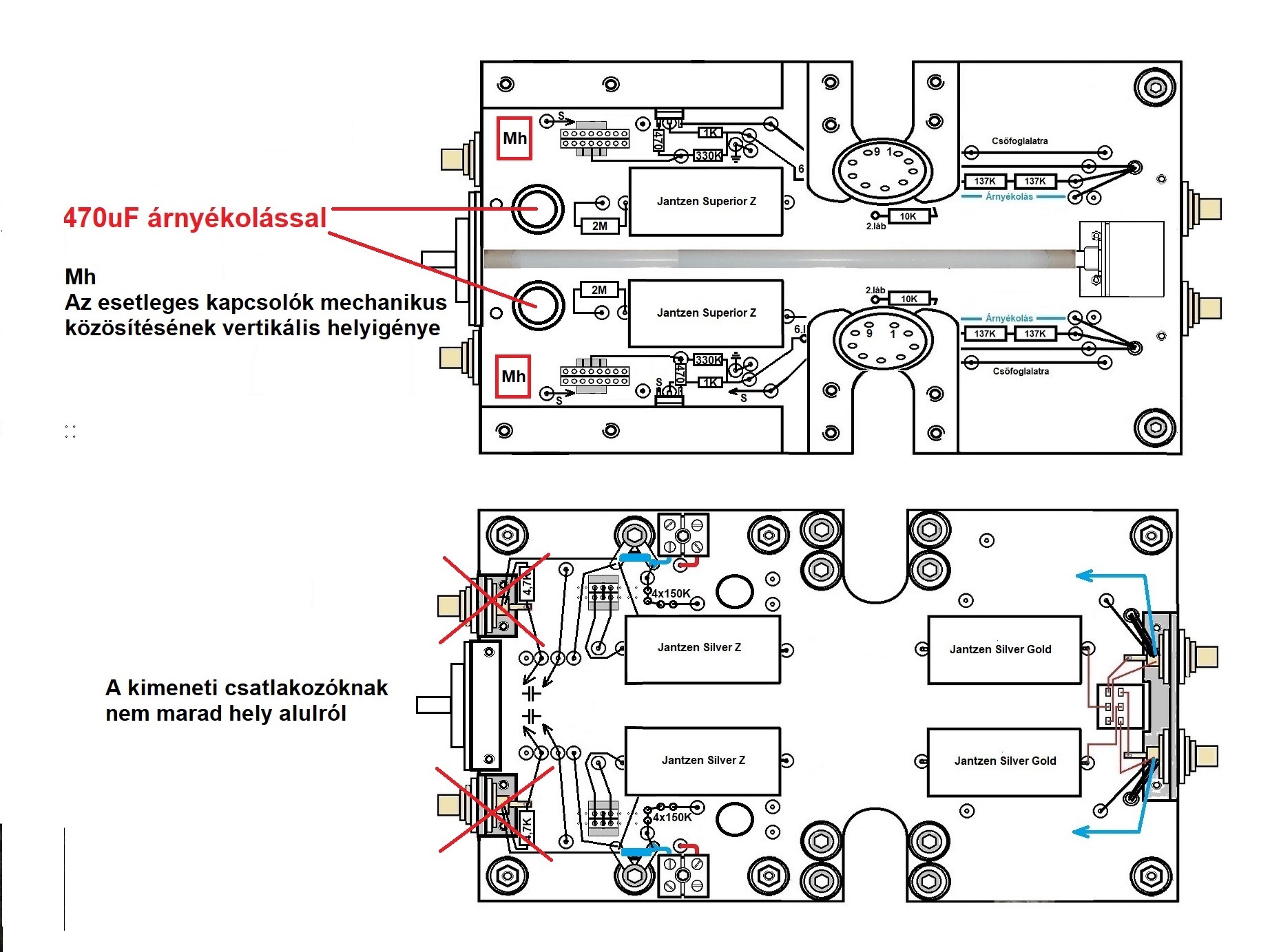 Több probléma is van ezekkel. Amikor KT-nak javasoltam a VCSKRZ-t, Ő jelezte, hogy mint nálad torzítást tapasztalat. A megoldás, mint írtam a 20-22000µF oldalanként. Ha megnézed a Canamp-ot, a FH6-ot az A osztály miatt bizony melegszik. Nagyobb teljesítmény, nagyobb hő. Itt el kell dönteni, számodra mi fontosabb. Én ezt nem tudom átvállalni. Régi dolog, hogy a kapcsolás magában nem megoldás, mivel a megépítés módja legalább annyira számít az eredmény tekintetében. Nem véletlen szoktam mondani: mi a fontosabb, ahogy kinéz, vagy ahogy szól. Most így fejből ne kérdezd, de kedves mentorom megemlítette anno, hogy a bemeneti töréspontnak meg kell egyeznie a visszacsatolás töréspontjával. Értékeket most ne várj tőlem. Ja, wima, anno a VF3-nál én is kipróbáltam. Egy hét után lettek mélyei is. Tudom a hely, de egy Jantzen superior Z már több wimánál.