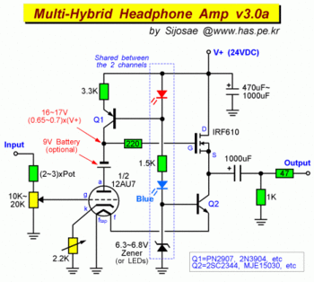 A fenti kapcsolások megépítését nem ajánlom. Az elektroncsöveket nem arra tervezték, hogy 24V-os anódtáppal használjuk őket. Most őszintén, képeljünk már el egy Ia-Ug görbét, amin az Ua paraméter 10-20V tartományban van. Hol lesz ott a görbe lineáris szakasza? ECC85_adatlap