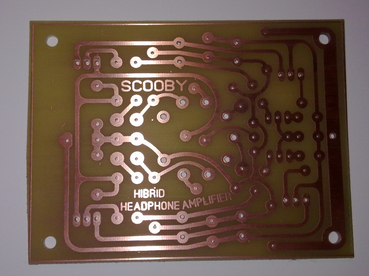 Egyszer már csak úgy önmagában megépítettem ezt a hibrid erősítőt a fent csatolt rajz alapján, csak aztán elkallódott a dolog, nem foglalkoztam vele, a NYÁK beoxidálódott, a konstrukciót abban a formában nem tudtam hasznosítani és a táp stabilitására is nagyon hárklis volt. Most CIROKL mester ajánlásával 1-2 módosítással nekiugrottam újra, s most itt tartok. Hétfőn megveszem bele a maradék alkatrészt és beültetem. A nyák a suliba készült fotózásos eljárással. Sajnos a benti nyomtató ramaty, így a "piszok" meglátszik a panelen, na de annyi baj legyen! ![]() A végfetek a panel rögzítőfuratai alatt kapnak majd helyet (csillám még nincs alatta), ugyan így az áramgenerátorként működő LM317 is majd a panel másik végében, és vezetékkel fogom bekötni. Sajnos erre az egy dologra nem gondoltam a panel áttervezésekor, hogy majd hogyan fogom a tranzisztort rögzíteni. A hozzászólás módosítva: Nov 30, 2013