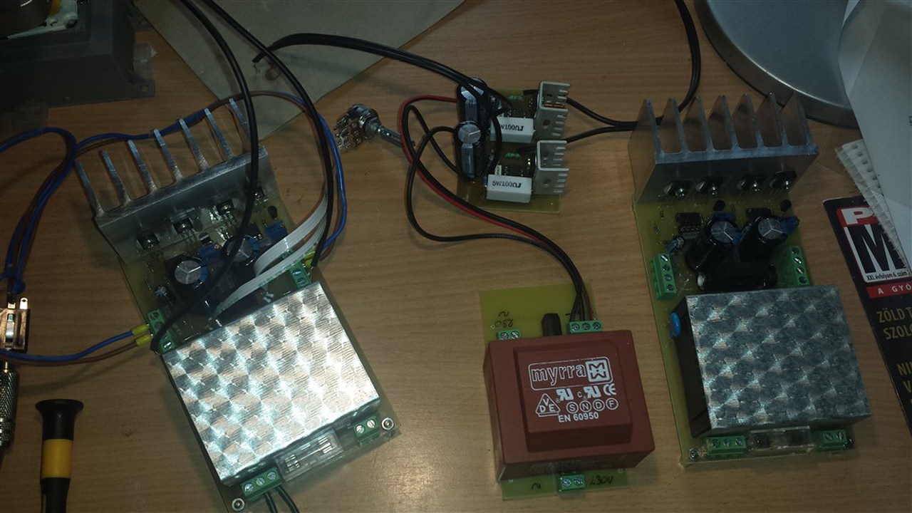 na jó ez túlzás a részemről, elvégre tanuló fokozaton vagyok itt! ![]() Elkészült az áramgenerátoros verzió is. Az ÉN (hangsúlyozom az én) véleményem a következő: A 100ohm-os verzió és az áramgenerátoros verzió között a különbség nem jelentős! az áramgenerátoros darabot 100mA ra állítottam be, helitrimmel. Hangerőben ugyan azt tudja mint a 100ohmos. Az áthallás nem romlott, a mélyek talán picit kisebbek lettek, viszont a közép tartomány nekem részletgazdagabb az áramgenerátorosban. A borda kevésbé melegszik. De hangsúlyozom... csukott szemmel nagyon nehezen tudnám megkülönböztetni a két erősítőt. Az NE és az OPA között akkor már van különbség, ha az OPA 606 van bent. Akkor sokkal dinamikusabbnak tűnik mindkét verzió. Összességében nekem az áramgenerátoros verzió jobban tetszik, OPA 606 al felszerelve... De minden esetre piszok nagyot szól!!!! ![]() Adok pár képet... A hozzászólás módosítva: Júl 30, 2016
