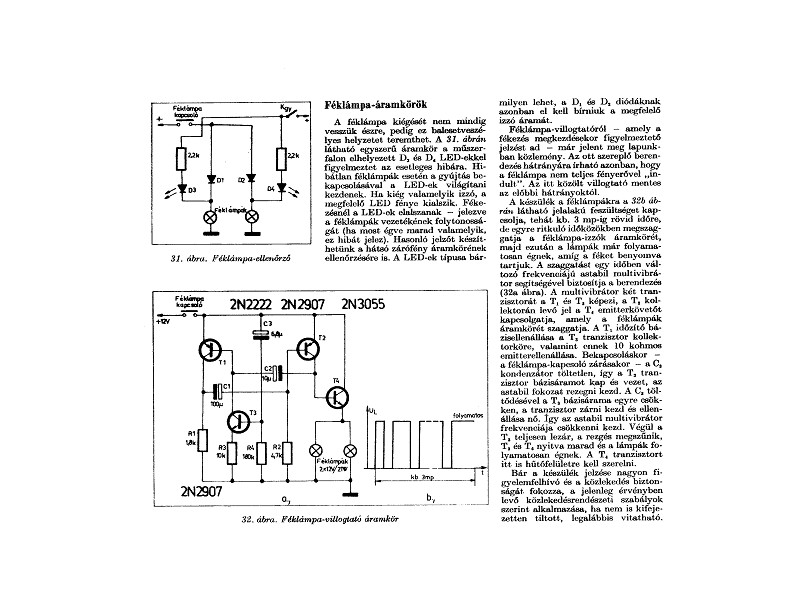 ) HE évkönyvben volt egy egyszerű tranzisztoros kapcsolás, ami a féklámpát villogtatta, ráadásul úgy, hogy a freki idővel csökkent. Sajnos nem tudom, hogy hol vannak az évkönyveim, de talán valaki be tudja szkennelni a rajzot. Akkor én megcsináltam a Simsonomhoz, de emlékezetem szerint nem sokáig maradt benne.