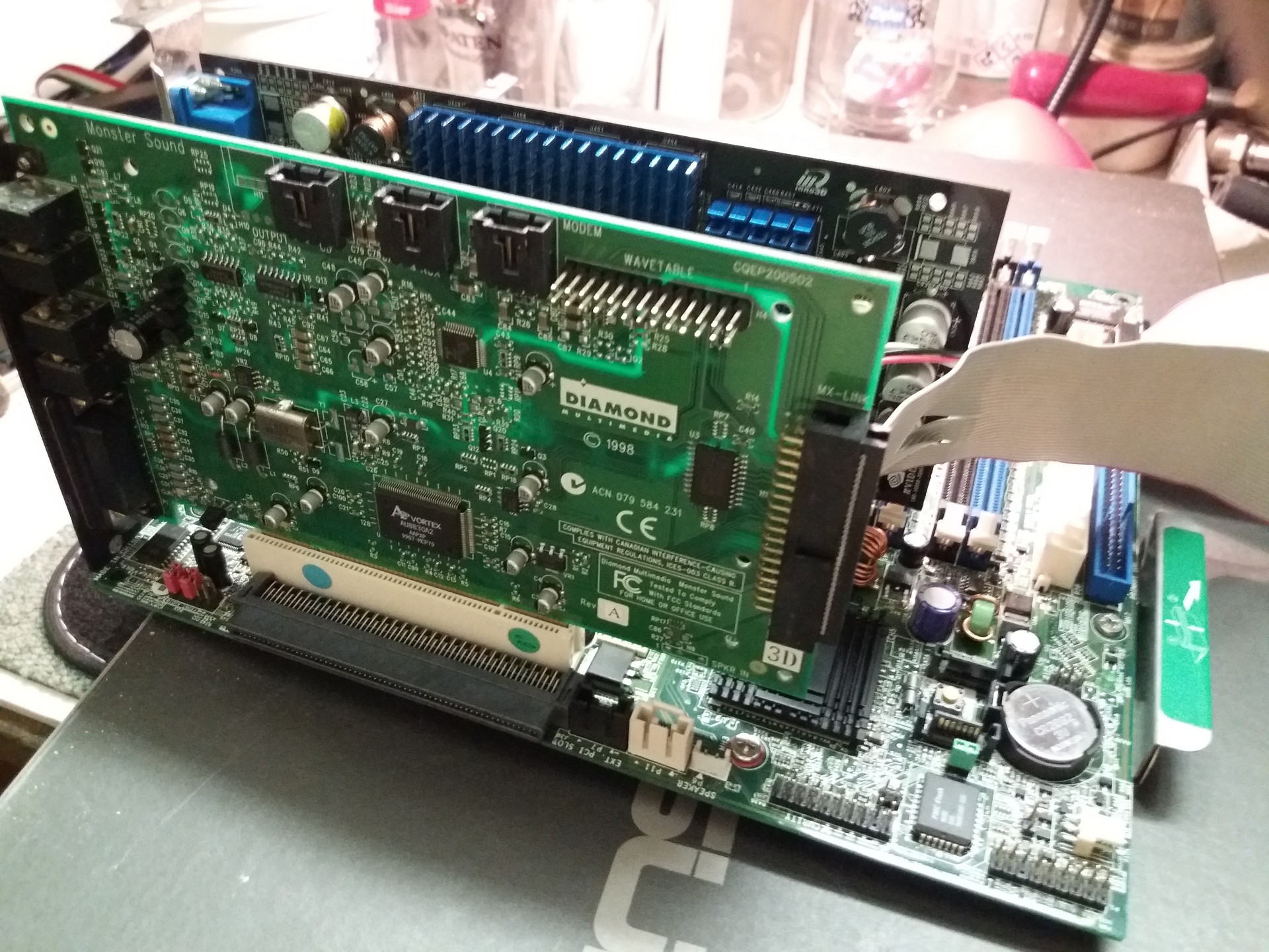egy darab videokártya - NVidia GeForce3 Inno3D Titanium200 128MB TV AGP (2002) egy darab hangkártya - Vortex Diamond PCI