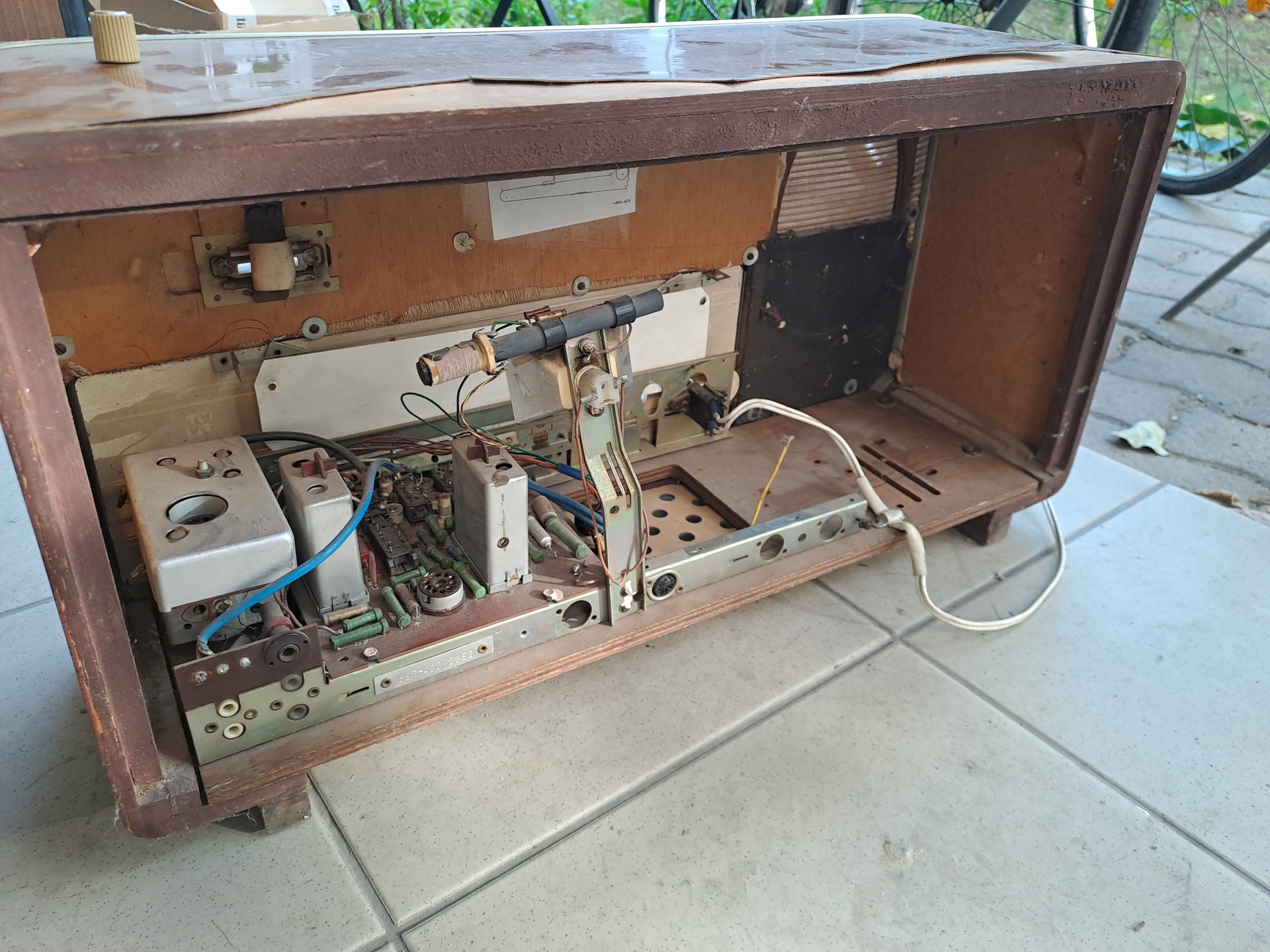 Elvihető, személyesen, egyben. A műszerdoboz elején van egy kivágás de az a lap külön cserélhető. Az erősítő emlékeim szerint nem működik, de talán piszkálva sem volt. A motor talán kenyérsütőgépé lehetett, az viszont ha jól emlékszem működőképes, bár az indítókondiját még nem találtam meg.