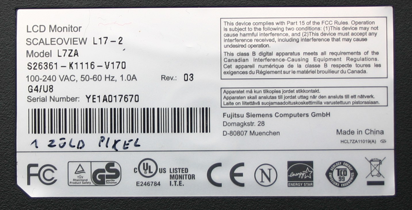Pestlőrincről elvihető 17" Fujitsu-Siemens ScaleoView L17-2. Teszteletlen, felirat szerint van egy halott (zöld) pixel rajta.