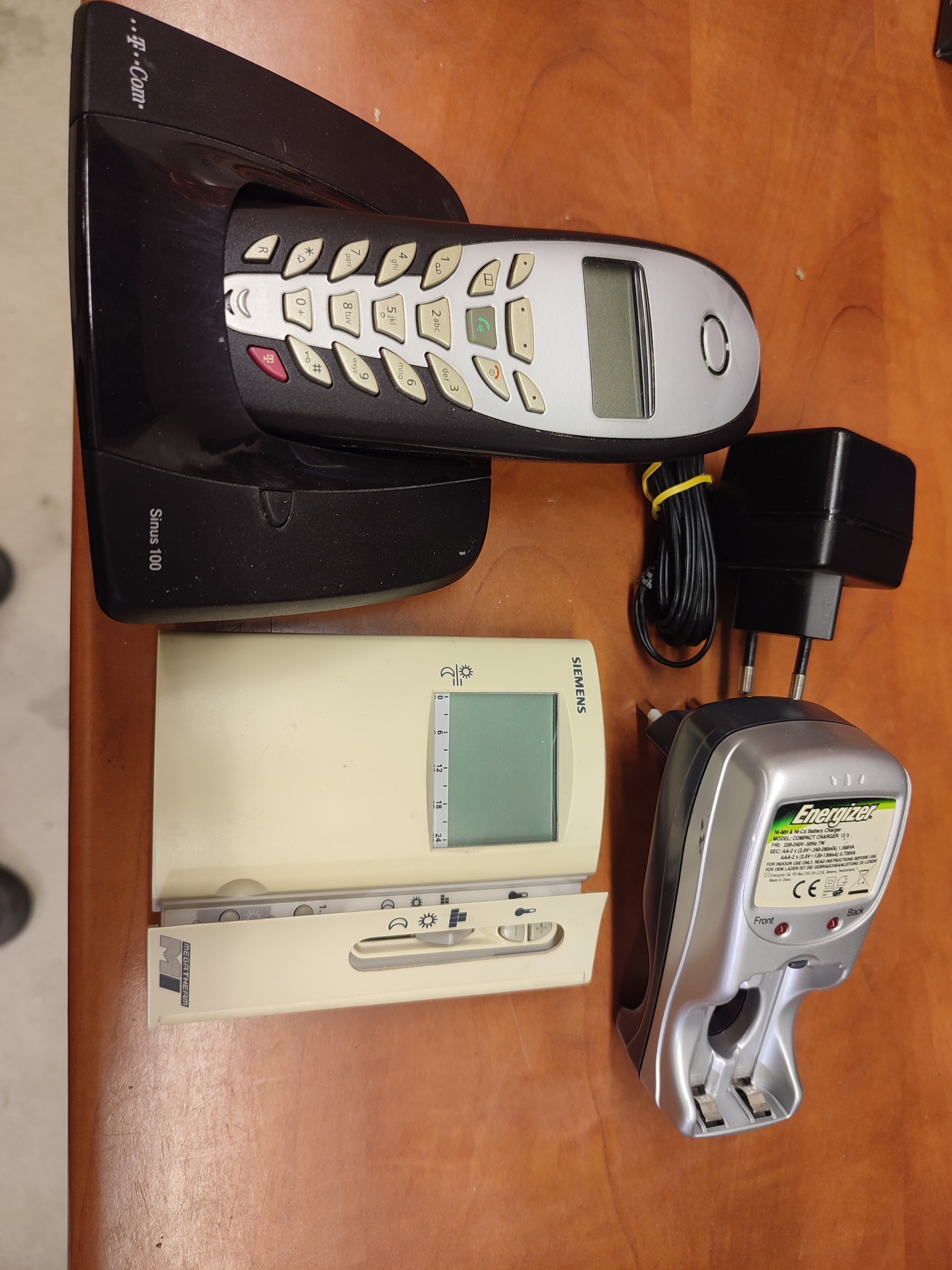 Előzetes egyeztetés után elvihetők a XVII. kerületből az alábbi - elvileg működő cuccok. A telefonba gondolom kell akku (2 NiMh AAA) a termosztát elemtartója törött (szinén 2 db AAA elem kell bele) Az akkutöltő tudtommal jó (NiMh)