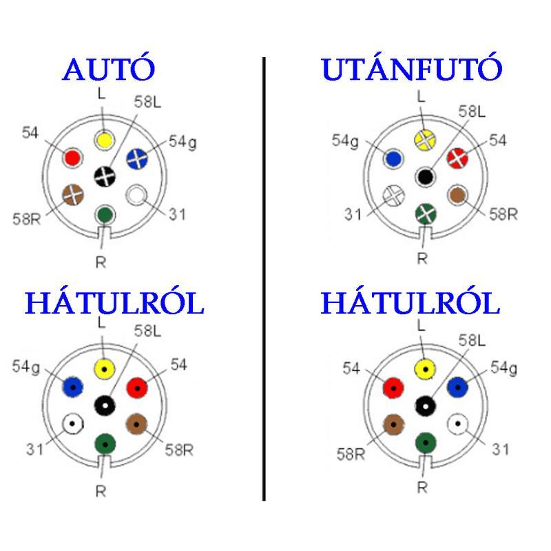 Utánfutó bekötés már tényleg OFF itt, de... Ha régi bekötés, akkor még rendben van így, új bekötésnél már nem megy át a műszakin. Az újaknál (néhány éve) már kötelező a köd és a tolatólámpa is, a 13 pólusúval kell szerelni. Janinak a forgalmiban valószínűleg benne van régóta a vontatás, ezért ki lehet javítani az eredetinek megfelelően, ahol a 7 pólusú csatihoz kell az 5 szál (világítások közösítve a tartalék kihagyva).