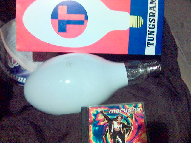 Szóval az udvarvilágítás története a következő: találtam ócskás piacon egy közvilágitási HgLi lámpát burával trafóval mindennel. Azt hiszem 150 wattos. Nagyon örültem, rögtön meg is vettem 1250 forintért, hogy majd levilágítót csinálok belőle. Meglátta az apósom, hogy húúú milyen jó lesz udvarvilágításnak. (most náluk lakunk valameddig) Az udvarukon nincs semmilyen világítás és nagyon jól jönne néha. Most, hogy megtuttam, hogy ő szeretne ilyet, arra gondoltam meglepem valami frankó lámpával, de ami azt illeti ez hatalmas udvar, szóval inkább valami nagyobb kaliberü cumóval lepem meg, de lehet, hogy több kissebbel, még nem tudom, kipuhatolózom, mi is tetszene neki a legjobban.