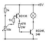 Egy kapcsolouzemu szabalyzot megepitettem, de sajnos nem jo a kapcsoloüzemű megoldas, mert az izzo zug. (elegge hangosan). Ugyhogy most keresek egy nem kapcsolouzemu fenyerossegszabalyzo kapcsolasi rajzot. Szerintetek ez a kapcsolas jo lenne erre? Az nem gond, hogy nem 230V-ot adok ra hanem csak 6-ot? Legyszi segitsetek, mert mar teljesen tanacstalan vagyok.