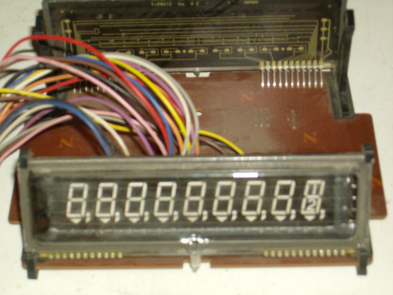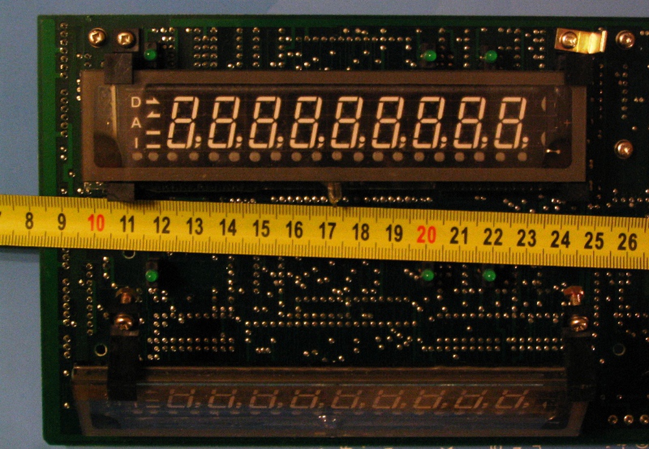 A kijelző, mint látható, 145 mm hosszú, 33 mm széles, a karakterek maguk 15 mm-esek. 4 fűtőszál van párhuzmosan, 130 mm hosszúak. A vastagságukat hadd ne mérjem le A fűtés ellenállása hidegen 20,5 Ohm. A hátulján látszik a bekötési rajzolat: közösített anódok vannak, külön kivezetett rácsok, tehát multiplex a meghajtása. Illetve ott a típusszám, nem csak a címkén de az eszközön is. A meghajtó eletronika ott van a kijelzők mögött, de valami ismeretlen IC-kkel, meg jónéhány logikai kapuáramkörrel körítve, jó nagy. Emiatt sem használnám, meg nem tudom, melyik csatlék mire szolgál. Inkább építenék én meghajtást. Ehhez kellenek az adatok. Előre is köszönöm. Upd: a panelon van egy Mitutoyo MP-53703 felirat, én rákerestem, semmi. Annyi kiderült, hogy ez a cég mérőkészülékeket gyárt. Hát akkor nem videomagnóból van a cucc A hozzászólás módosítva: Dec 7, 2015