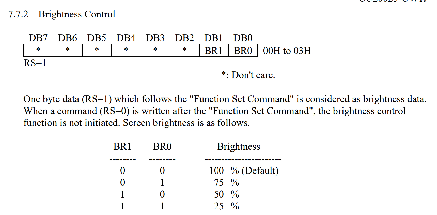 Az adatlap egészen pontosan azt írja, hogy a function set parancs után következő adat byte-ot a fényerő állításnak értelmezi. Tehát mindig a két utasítást mindig egymás után kell küldeni, és a mágikus számok helyett ajánlom a LiquidCrystal_I2C.h-ban lévő define-ok használatát. Hasonlóakat lehet definiálni a fényerő értékeire is, így sokkal olvashatóbb a program: