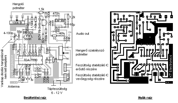 !!! A TDA7000-res PDF adatlapja a Philips-től is egy nagy kamu!!! Én megcsináltam és nem ment... De utánna megleltem ezt... Nézzétek meg a különbséget az eredeti PDF és e között, amit feltöltöttem!!! A kondik a GND-re csatlakoznak és nem a pozitívba!!! Aki rám hallgat, az jól jár...