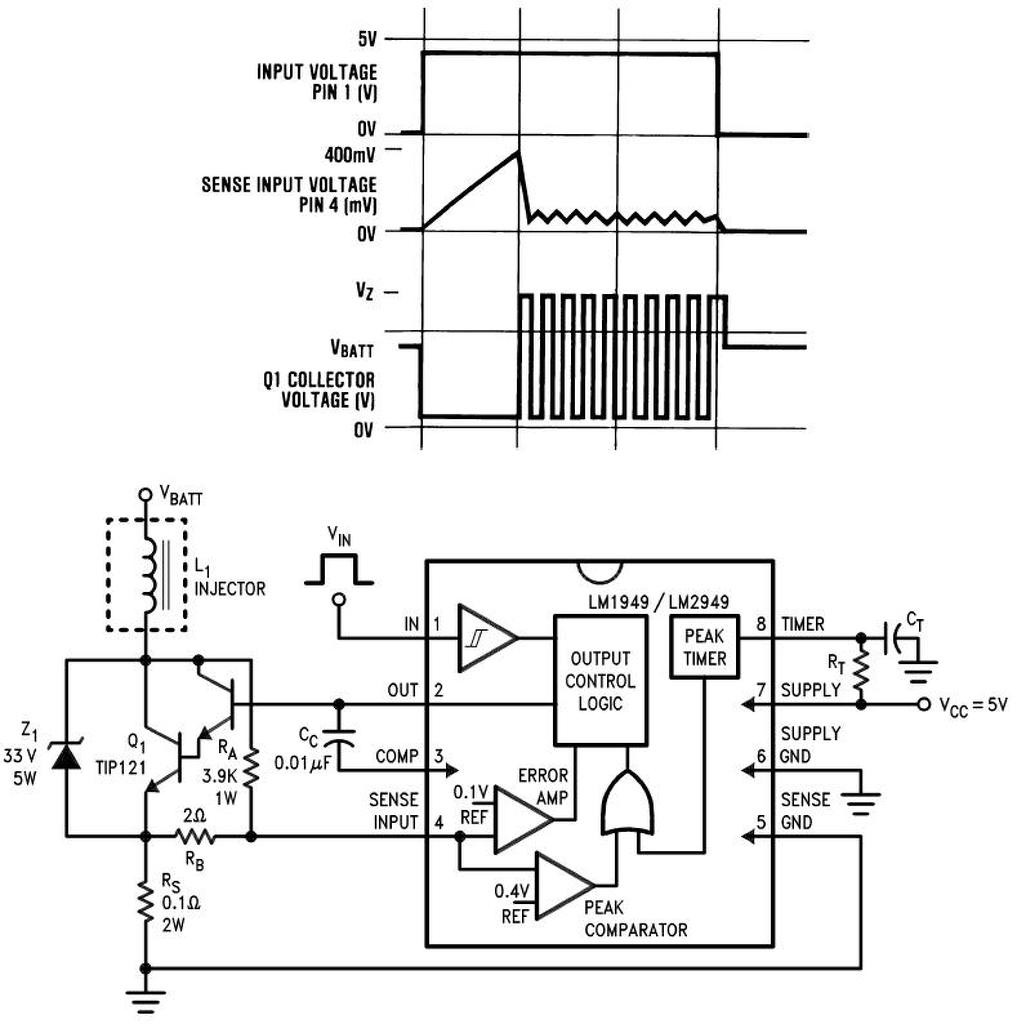 A ma használatos benzinbefecskendezéses motorok jelentős része vagy az LM1949 vagy a CS452..453 jelü vezérlő IC-t használja. Van más tipus is, de én csak ezeket ismerem. Előbbi TI, utóbbi Motorola gyártmány. Azt nem tudom hogy milyen tipus a CORSA-ban alkalmazott. Fentiektől eltérő is lehet. A vezérlő Ic adat lapjának tanulmányozását javaslom. Az injektor tekercsének egyik vége a tápfeszültségre van kötve, a másik végét az injektor vezérlő végtranzisztora(ez egy darlington) a földre köti, a befecskendezés kezdetekor. A befecskendező szelep nyitási ideje jellegzetesen 0,001 s ( 1 ezredmásodperc). A szelep nyitva tartásához kevesebb áram kell, mint a kinyitásához, ezért a vezérlő korlátozza az áramot a "tartóáram" értékre (kb.megfelezi). A tekercs áramának csökkentése önindukciós feszültséget hoz létre. A feszültség határolására a meghajtó tranzisztor emittere és kolektora közé egy 33 V-os zener diódát tettek. A befecskendezés befejezésekor az injektor áramámak kikapcsolása egy hasonló feszültséglöketet generál, mint amilyen az áram csökkentésekor keletkezett. A csökkentett tartóáram a valóságban úgy keletkezik hogy a vezérlő ki-be kapcsolgatja a tekercset. A tekercsen és a végtranzisztor kolektorán a zenerrel határolt négyszög impulzus-sorozat jelenik meg. A nyitva tartás ideje mérhető. Azonban azon is el lehetne gondolkodni hogy a leszabályozási impulzusok száma is arányos a fogyasztással és lehet hogy ezeket kellene megszámolni? Több megoldás lehetséges. Ami hengerenkénti befecskendezést illeti, egyetlen henger fogyasztásaism arányos az összes fogyasztással, legfeljebb más értékkel kell szorozni hogy adott mértékegységben kapjuk a fogyasztást,