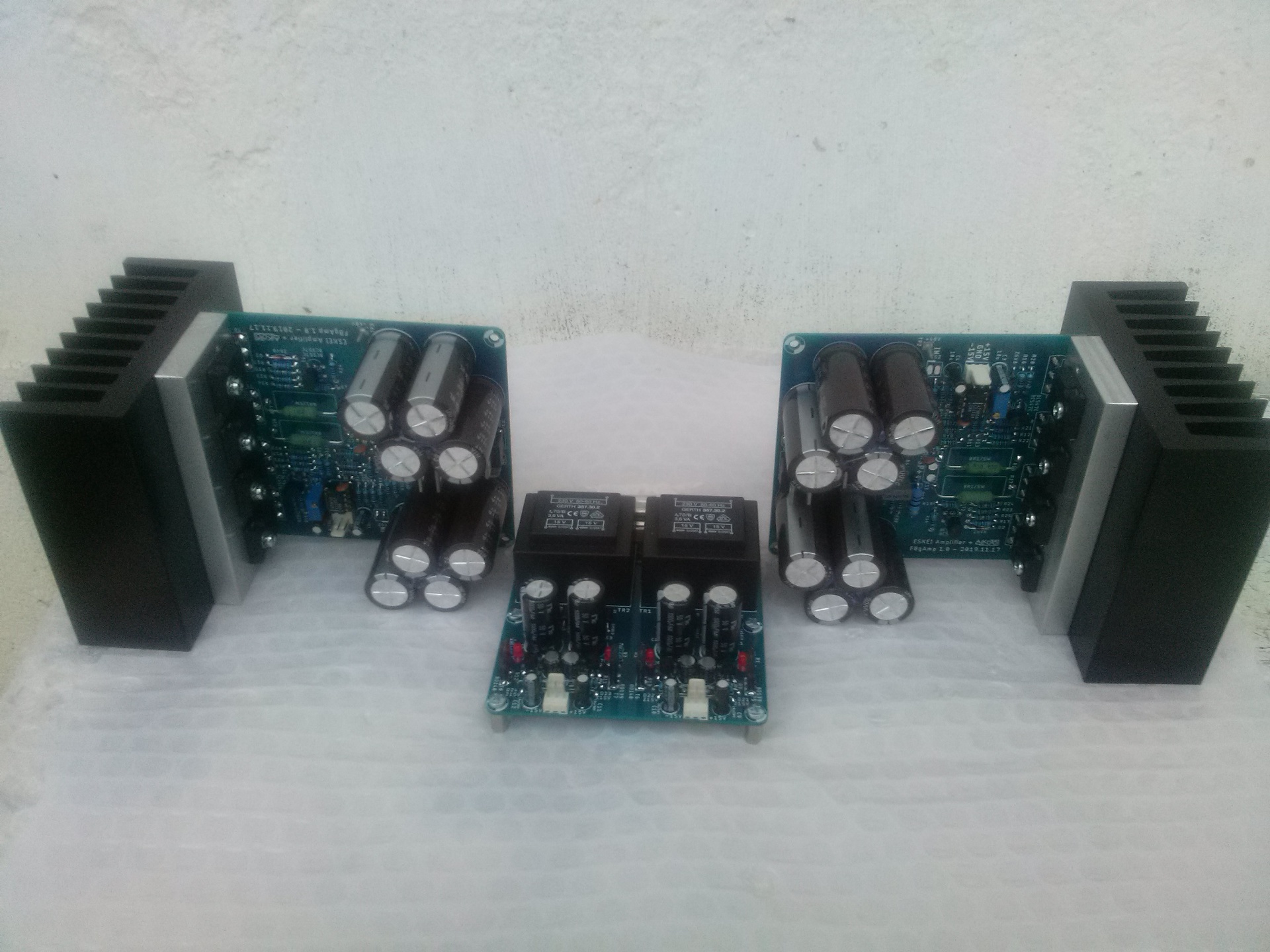 Nem az első kísérlet a földelt kimenetű topológiával, sőt inkább amolyan budget erősítőnek indult. A neve is az lett. Az, hogy Karesz a hangminőség útjára terelte, az külön érték, viszont első indíttatásként a gyors után építés lebegett a szem előtt. Egy olyan erősítő, ami egy TDA vagy valami hasonló megépítési nehézségű, beállítást nem igénylő, de több tartalékkal rendelkező, hogy ne kelljen félni a tíz százalékkal nagyobb tápfesz miatt. Ez a budget dupla nagyságú táppal is bekapcsolható, nem lesz baja. De valahogy jobb lett mint aminek készült. Bízom benne, hogy nem az utolsó érdekes kapcsolás ami eljut a megépítés szintjére, mert van még a tarsolyban néhány gondolat.