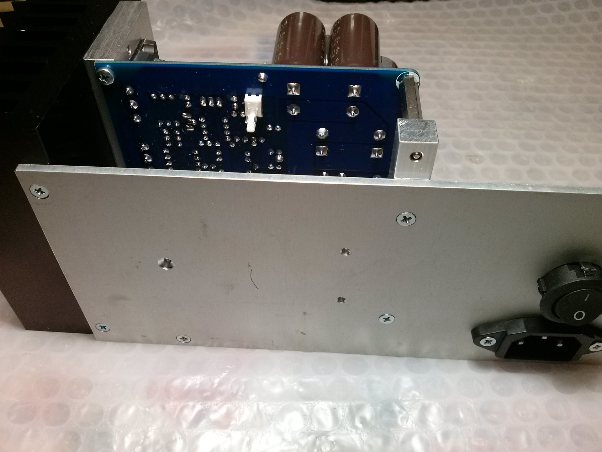 Most nem tudom, hogy a hűtőbordára, vagy a hűtőtönkre gondolsz. A hűtőbordát a Fischer vágta el ilyen szépen, a 10x40-es alu sínből vettem 40 cm-t a színesfém telepen és ott vágták el gépi fűrésszel, én meg csaltam mert a gépi fűrészelés van a teteje felé fordítva, csak kicsit meghúzgáltam reszelővel. A felülete szép volt eleve, azt a végén kicsit megcsiszoltam "smirglivel".