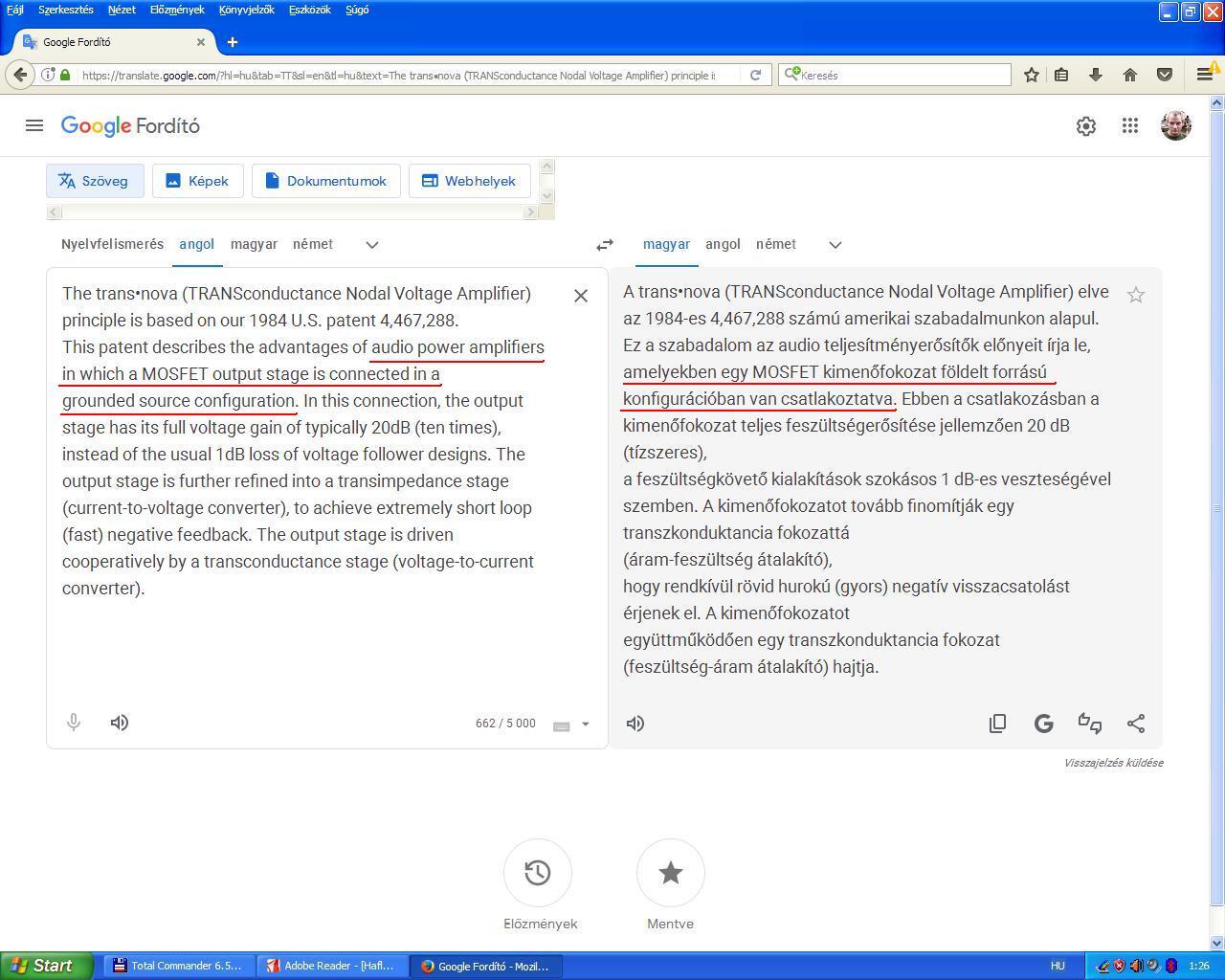 Lehet, én neveztem el "földelt kimenetűnek" (de úgy emlékszem valahol láttam ezt az elnevezést). Arra utal, hogy a végfok kimenete látszólag a földpontra dolgozik (ami persze nem igaz). Hafler, Trans-Nova erősítőjének szabadalmában "földelt source csomópontú transzkondukcia erősítőnek" nevezi ezt a megoldást. De Ő itt csak a visszacsatolókörre kér szabadalmi védettséget. Lényegében el lehetne nevezni transzkondukcia erősítőnek is, vagy földelt source (földelt emitteres) kapcsolásban működő kimeneti fokozatnak is... vagy máshogy is. Ha nem tartod szerencsésnek a földelt kimenetű elnevezést, várok valami frappánsabbat és azután "az lesz az igaz" ahogy a Belga is énekli. A VAS meg olyan mint az, hogy ma már nem "bótba" járunk hanem "soppingolni", nem kocsmába hanem pub-ba, stb. A régi magyar becsületes neve ennek a feszültség erősítő fokozatnak nagyjelű erősítő volt - de ez kihaló félben van mert szeretünk majmolni. A nagyjelű erősítő szerintem szerencsésebb elnevezés a "hagyományos" kapcsolásokban, mert utal arra, hogy azon a csomóponton (a nagyjelű erősítő kimenetén) megjelenik a végfok teljes (maximális) kimeneti feszültsége. A "földelt kimenetű" kapcsolásban ez a fokozat hiányzik - a szó hagyományos értelmében - mivel a nagyjelű erősítőnek csak a kimeneti ármerősítő fokozat vezérlőfeszültségét kell előállítania/szolgáltatnia. A feszültségerősítés oroszlánrészét a transzkondukcia erősítő végzi/veszi át (16-40 dB). Hogy mit nevezünk a végfok kimenetének? Első közelítésben azt mondanám, hogy azt a csomópontot ahol a hangszóró egyik pólusán a kimeneti fezültség megjelenik. De ez így nem mindig igaz, mert a teljes hídnál mindkét pólusán van (fél) kimeneti feszültség. Félhídra szerintem az első közelítés érvényes. Ha a "földelt kimenetűnél" maradunk, ott a pufferkondenzátorok - amik egyben kimeneti csatolókondenzátoroknak is tekinthetők - közös pontja a végfok kimenete.