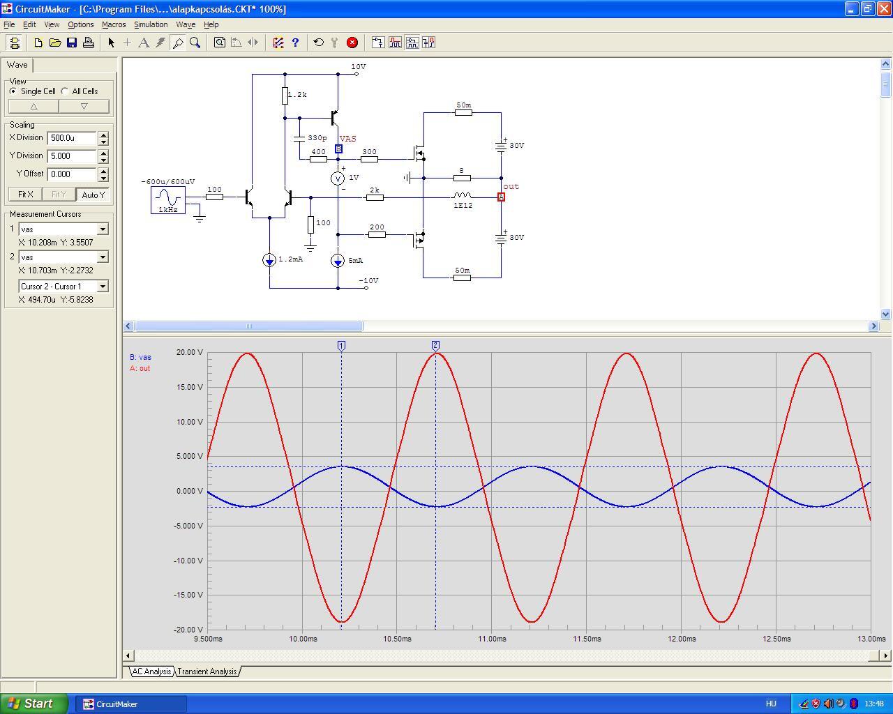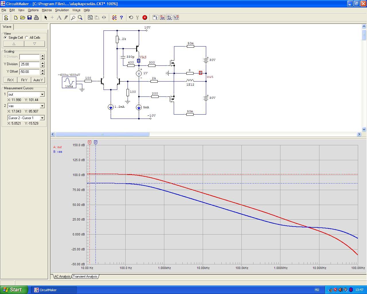 Valahol olvastam, hogy a VAS sem egy pontos elnevezés, hiszen többnyire egy BJT tranyóból felépített fokozat. Egy BJT a kimeneti karakterisztikája alapján áramvezérelt áramgenerátor, vagyis a bemeneti áramból kimeneti áramot állít elő, aztán a terhelésen lesz belőle feszültség. Tehát nem feszültséget erősít, hanem áramot. Már megszoktuk a VAS elnevezést, tehát így maradt.