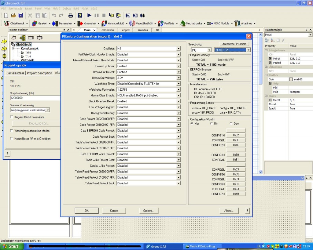 Üdv Mindenkinek! Az miért van, ha a programba beállítom, hogy HS kristályt használok (12MHz) akkor a programozás után a PIC be sem indul? Ugyan ezt játszotta a többi kristállyal is. 15-16 lábra tettem a kristályt 22pF-os kondenzátorokkal. A belső órajellel viszont szépen fut, de az kevés nekem.