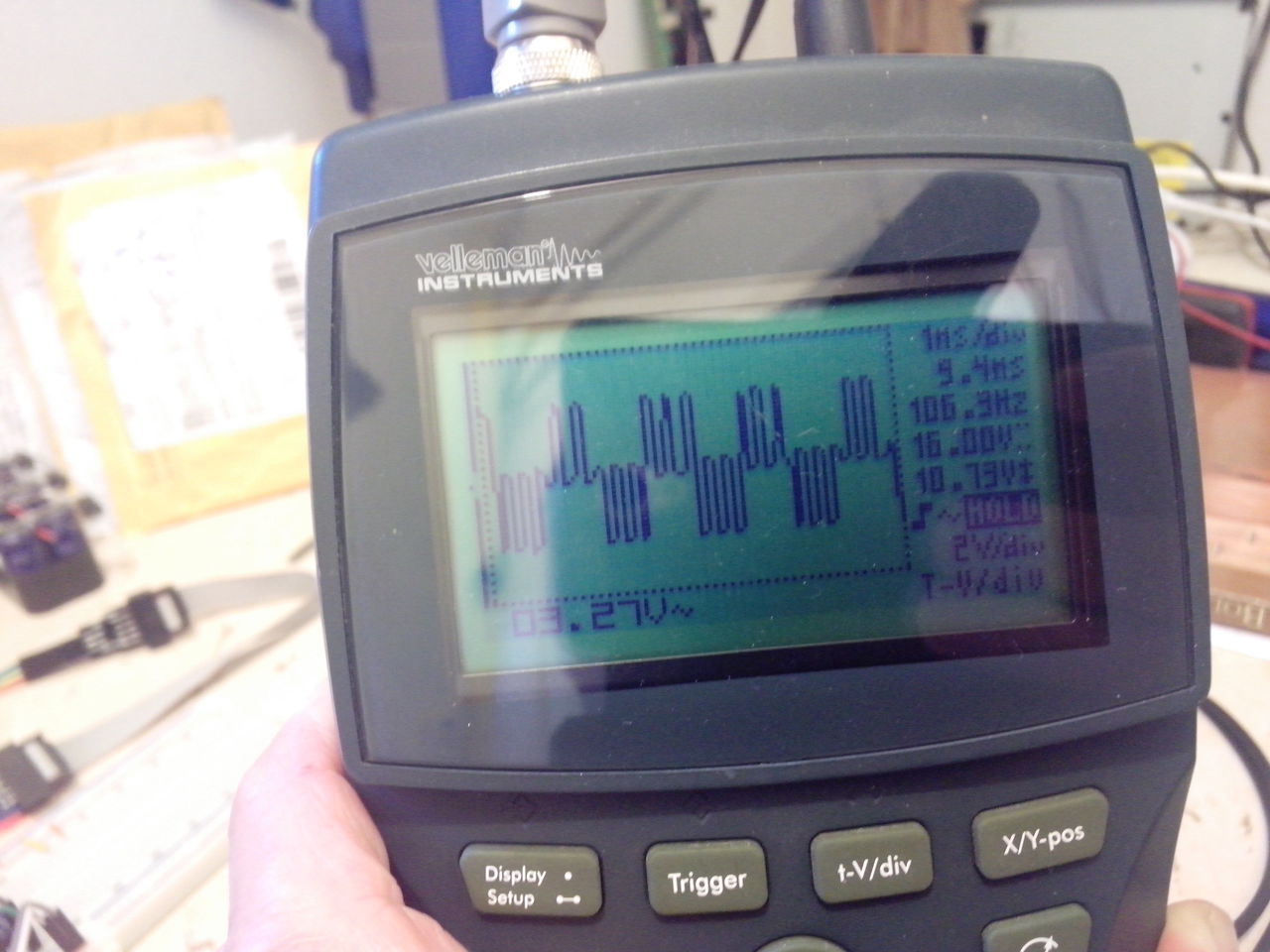 Kipróbáltam.. A makró hívást át kellett raknom ciklusba, így már volt két pwm csatorna, és állítható a szélessége. De a frekit nem mutatta a scop. Flowban szépen fut. Az alakja is furcsa..