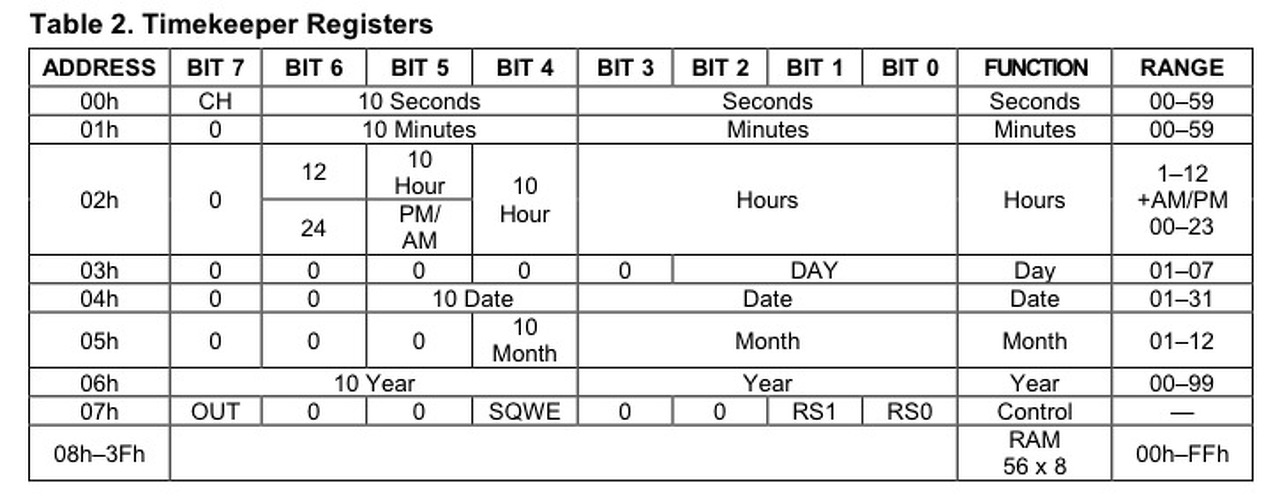 Mellékletben két kép. Az I2C parancsok a DS1307 típusú RTC IC olvasásáról és írásáról szólnak. A képeken nem látszik, de a teljes program elején szerepel egyszer az I2C inícializálása. A harmadik kép az IC belső regisztereiről (memóriaterületeiről) szól, bővebben az adatlapban találsz információkat.