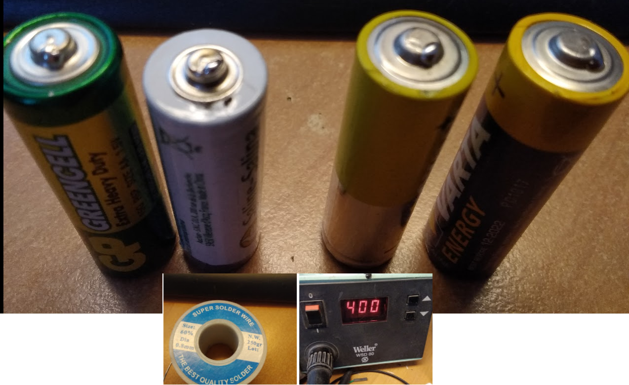 Általánosságában a hengeres kivitelű elemek (pl. ceruzaelem) is forraszthatóak normál ólmos forrasszal. Ami megnehezíti a folyamatot az a nagy hőelvonás. Ezért nagy hőtehetetlenségű hegyet, 400 fok körüli hőmérsékletet és ólmos forrasztóónt javaslok hozzá. (vagy egy cseh pisztolypákát ) A hozzászólás módosítva: Jún 30, 2020