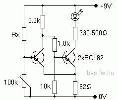 valami ilyesmire gondoltam. (kép)Tranyó : például NPN 2n2 vagy BFY 33