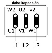 Igen, az ábra az eredeti (de módosítható) kapocslapot mutatja. Az UVW2 pontokon lévő áthidalásokat U1W2, V1U2, W1V2 pontokra kell átkötni. Kb. így: