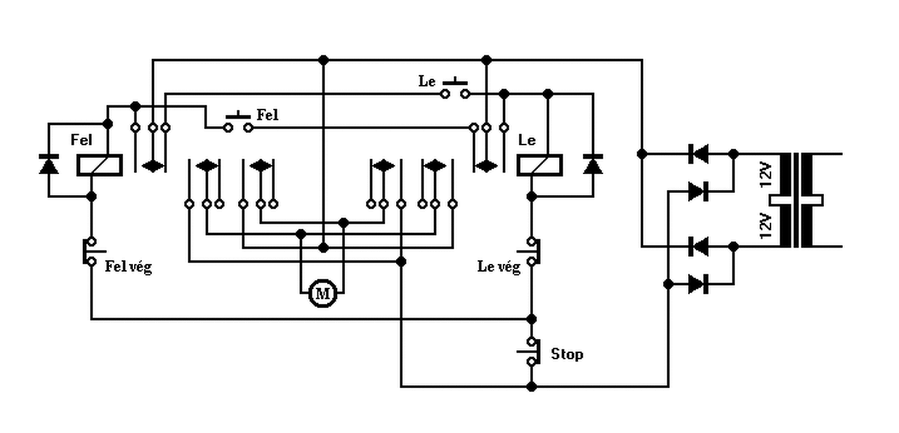 Két relével, keresztretesszel, stop bármely helyzetben.