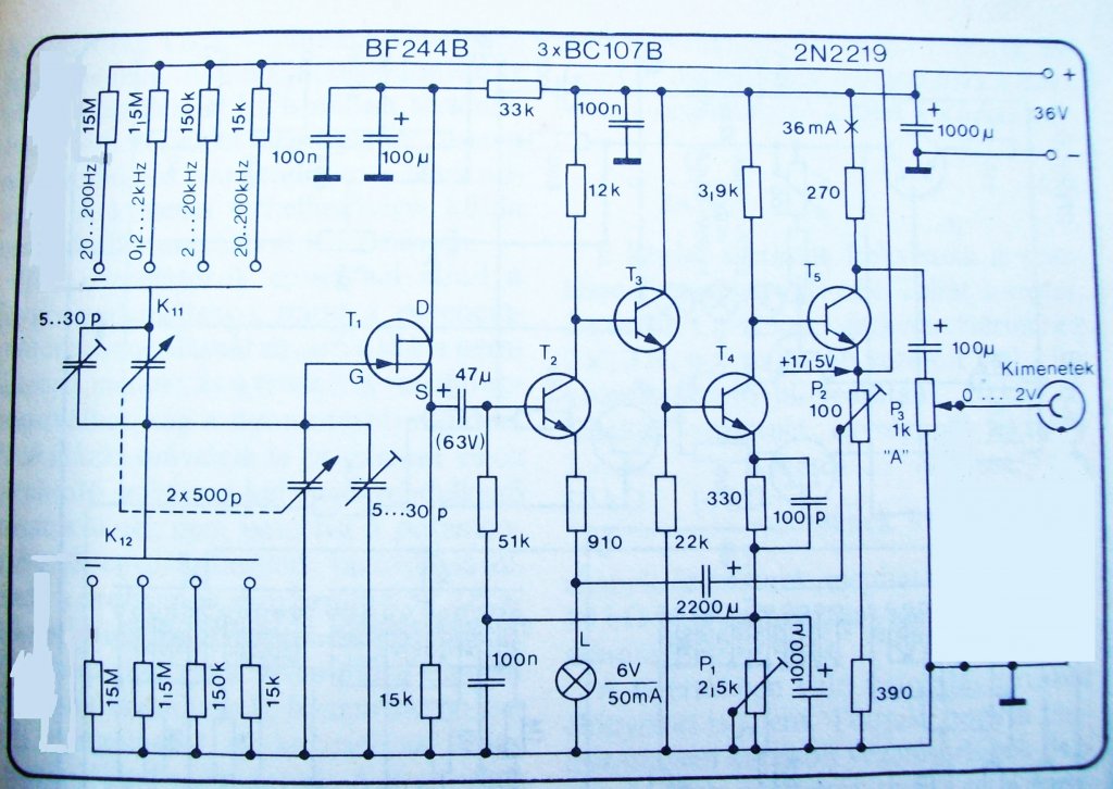 Szeretnék egy színusz generátort építeni erősítők teszteléséhez ki is néztem egy kapcsolást. A fő alkatrész 2x500pF forgó már megvan. Mi a véleménytek jó lesz ez nekem?