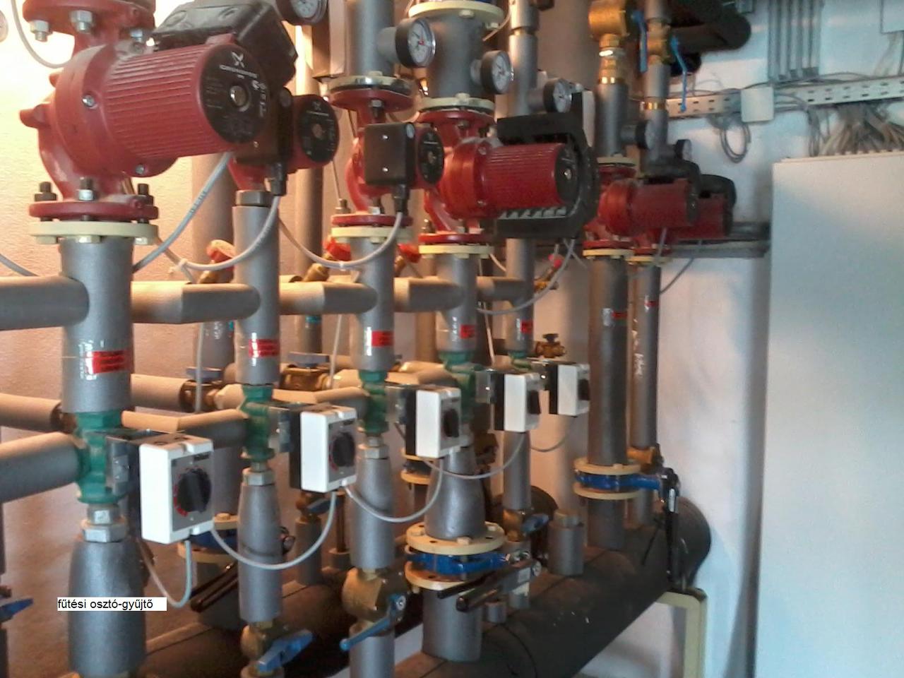 Az a lényeg, hogy van a tetőn egy osztó-gyűjtő, meg a pincében egy uszodai osztó-gyűjtő. A kettő között meg van 4 emelet. A fenti osztóból lejön a forróvíz a lenti gépházba, de csak akkor, ha valamelyik medence kéri a fűtést. Namármost ilyenkor rettenetesen lehűl a víz mindenhol. Az uszoda gépházban most cserélünk hőcserélőket, aminek elég a 45-50 fokos víz. Ha a fenti osztónál szabályzottan leküldök 50 fokot az nem hűti ki a teljes ház vízkészletét.