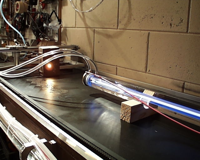 Néhány kép a csőről és a tápegységről, valamint a gránit tömbbről amit éget.