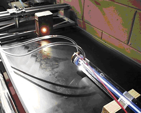 A kilépő sugár 5,2 mm és az 60 W. Az még tovább fokuszálva. Ezt a csövet egy lézeres vágógépben használják. Megvan a gép összeállítása is. Csak szoftvert nem tudtam megvenni tőlük, de az nem is gond mert CNC -m van annak a szoftvere jó.