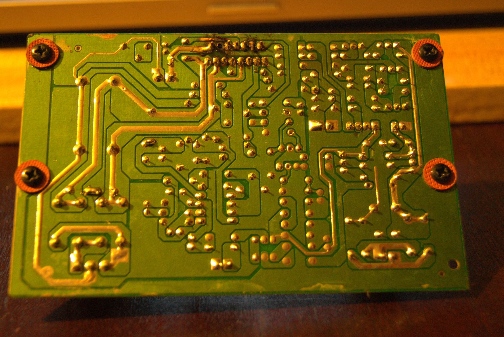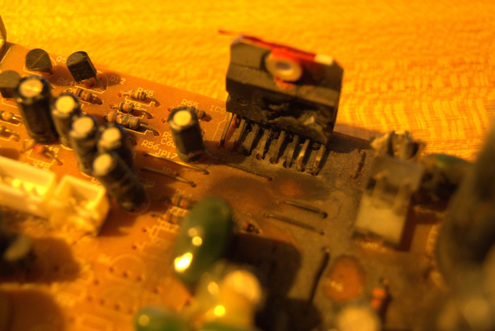 A kormos panelt nitro-hígítóval tisztítom. A panel kímélése érdekében érdemes a TDA7294 lábait elcsipkedni és egyenként kiforrasztani őket. Beültetés előtt a puffer kondikat ki kell sütni! Az IC nem szereti, ha nem egyszerre kapja meg a pozitív és a negatív tápot. Nézd meg a mélysugárzót, lehet hogy le van égve!