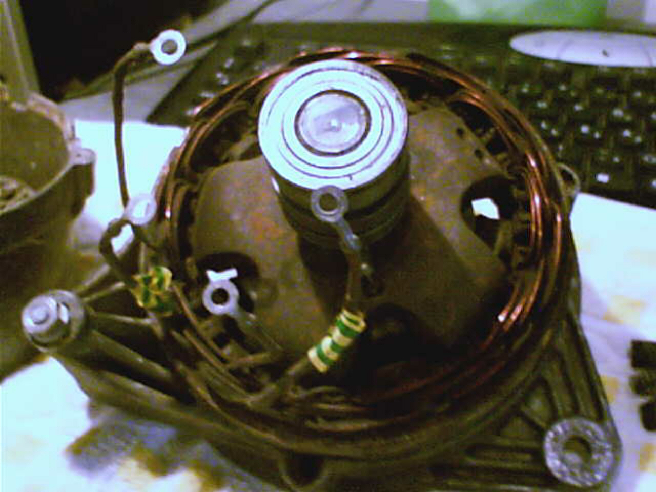 Na rámértem mostmár pontosan és diódavizsgálóval 470-et mértem minden diódán egységesen. A diódákat az első képen bekarikáztem és odaírtam melyik a B+ és D+. A második képen azt fényképeztem le ahova a szénkefék érintkeznek. Ezek már elég karcosak mondjuk, és nemtudom kell-e nekik de ha a kettőre rámérek sípol a szakadás vizsgáló és 1et mutat. Magábol a generátorbol 4vezeték jön ki. Ezek minde sípolnak bármelyiket mérem bármelyikhez. De gondolom ez nembaj... De néztem hogy ahol látod szigetelőszalag van, ott megvolt sérülve a szigetelés. Lehet ott érintkezett valahova...