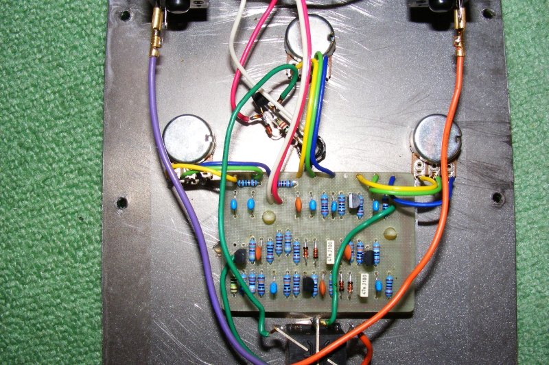Köszönöm! Na, ma délelőtt összeraktam. Kifejezetten jó cucc! A kapcsolás tone szabályzója szerintem messze az egyik legjobb. Nem egy Digitech Death Metal torzító, de aki megépíti nem fog csalódni benne. Mindent összevetve szerintem nagyon jól szól. (Meghallgatom majd egy nagyobb erősítőn, hogy milyen a hangja, és ennek függvényében lehet az erősítésén egy kicsit majd feljebb állítok....). De mindenkinek csak ajánlani tudom!!! A led egy Millenium Bypass 1-re van kötve. Az egy kicsit "gány", hogy így a levegőben lóg, de majd azt is lecserélem nyákra.