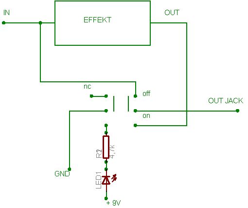 Itt a Marshall bekötés, csak ez nem true bypass, csak bypass. Én sok effektbe használtam ezt a bekötést és nagyon jól működik.