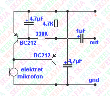 Egyszerű mint a faék, de lényegesen érzékenyebb így a mikrofon. 3-5 volt kell neki a leírás szerint(Skori weblapjáról nyúltam