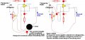 Minden vezetéknek van ellenállása, ami még rosszabb ,nagyobb frekvencián induktivitása is. Legyen a nyákra menő föld vezetéked 100mOhm. Nagy teljesítményen a hangszórón menjen át mondjuk 3A-es csúcs és égszakadás földindulás van akkor. Ez ezen a 100mOhmon keresztül talál el a földbe, ami a pufferen van. Akárhogy számolom és Ohm bácsi törvénye érvényes, annak a vezetéknek a két végén mérhető lesz U = IxR=3x0,1 = 300mV feszültség különbség. Ez a 300mV "vezérli" neked még plusszban a bemeneted, meg a visszacsatolásod. Ha úgy csinálod, ahogy lerajzoltam a hangszóró árama beletalál a csillagpontba, azt elmozdítani nem tudja, mert a leghidegebb pont, azt vesszük nullának, lehet a vezeték ellenállása bármennyi, azon maximum esik feszültség és kevesebb jut a hangszórónak, de a jelföldedet nem bántja semmi. Ezt szeretem én alkalmazni, ezt jelenti nálam a nagy és kis áramú földek elkülönítése! Azért mondom, hogy lehet, hogy az életben nem fog ez gondot okozni, DE, ha te még a nagyfrekvenciás szeméttel teletűzdelt tápodat is a végfokhoz kötöd, akkor az is elindul az egy szál föld vezetéken (mert a plusszt ugye a pufferről kapja, valahol záródni kell a kötnek) és azon, ahol a VM1 műszer van az megint elkezd feszültséget ejteni a szeméttel teletűzdelt áramával ,ami bejut a bemenetedre a visszacsatolásba...jobb nem is bele gondolni...! Zs.