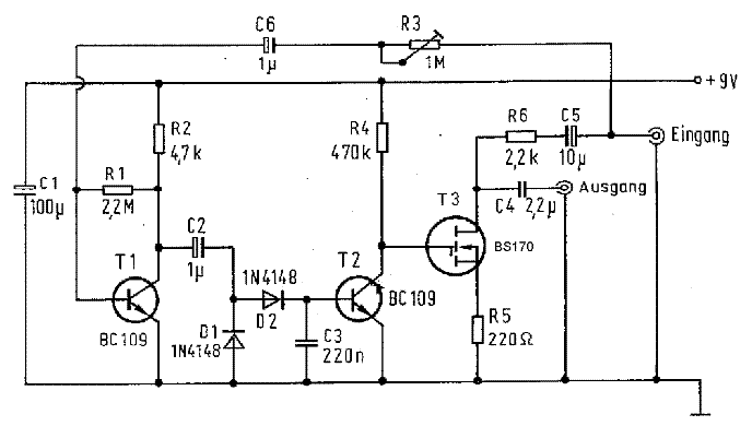 Elvileg működhet a dolog, de ezt azért profibban és modernebben is meg lehet oldani. Én magam terveztem egyet, ahol a némítást LDR-el oldottam meg, gyakorlatilag minden erősítőbe beépíthető, csöves, félvezetős... Az elve ugyanez, az elején erősítő fokozat, itt tudok szabályozni (treshold) , majd aktív egyenirányító egy olyan trükkel, hogy amikor belecsapsz, akkor csúcs egyenirányítóként működik ,elhalásra meg effektív érték képzőként. A végén komparátor, a kimenetén meg az LDR ledjét hajtom. Műveleti erősítőkkel működik célszerűen, egy be- és kimeneti bufferrel akár pedálként is el lehet képzelni: Annak idején elláttam egy decay szabályzással is, ami az elhalás idejét szabályozta, de aztán nem nagyon használtam és kikerült belőle. Az ldr-t magam készítettem a TME ből vettünk hihetetlen gyors opto ellenállást és igen nagy a sötét ellenállása, elég jó darab. Egy zsugorcsővel egybeépítettem LED-del, VTL vactrolokat simán lealáz tized áron! Tranyót bármilyen npn-t tehetsz a kapcsolásodba, erre nem kritikus, az erősítés lehet kicsit kevés lehet, ha kis jelszinttel akarod használni....Ki kell próbálni, semeddig nem tart összedobni Zs. :integet2: