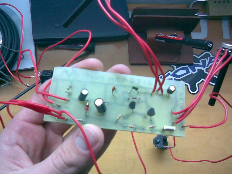 aha jók bár lehetne élesebb kicsit próbáld makróval fotózni, a forrásztás sebb mint amit annó elöször én müveltem XD viszont itt nyugodtan építs mindent a legközelebb egymáshoz és dugd tövig le az alkatrészeket, mert rengeteg zajt össze tud szedni, arra meg figyelj hogy a ki és bemenet legyen távol egymástol! késöbbiekben életet menthet, plusz egy trükk vegyél ic aljzatot, vagy foglalat ahogy tetszik és azt vágd méretre a tranyóhoz és azt ültesd be, és majd abba tedd bele a tranyót mert azt már nemkell beforraztani és tudod nagyon könnyen cserélgetni! esetleg tennél fel képet a csatlakozókról illetve a potikról képet hogy van összerakva illetve egészében h átlátható legyen, nehogy ott legyen valami apró gebasz. tetszik az árnyékolt gityókábeled tekercsbe meg a lakat XD