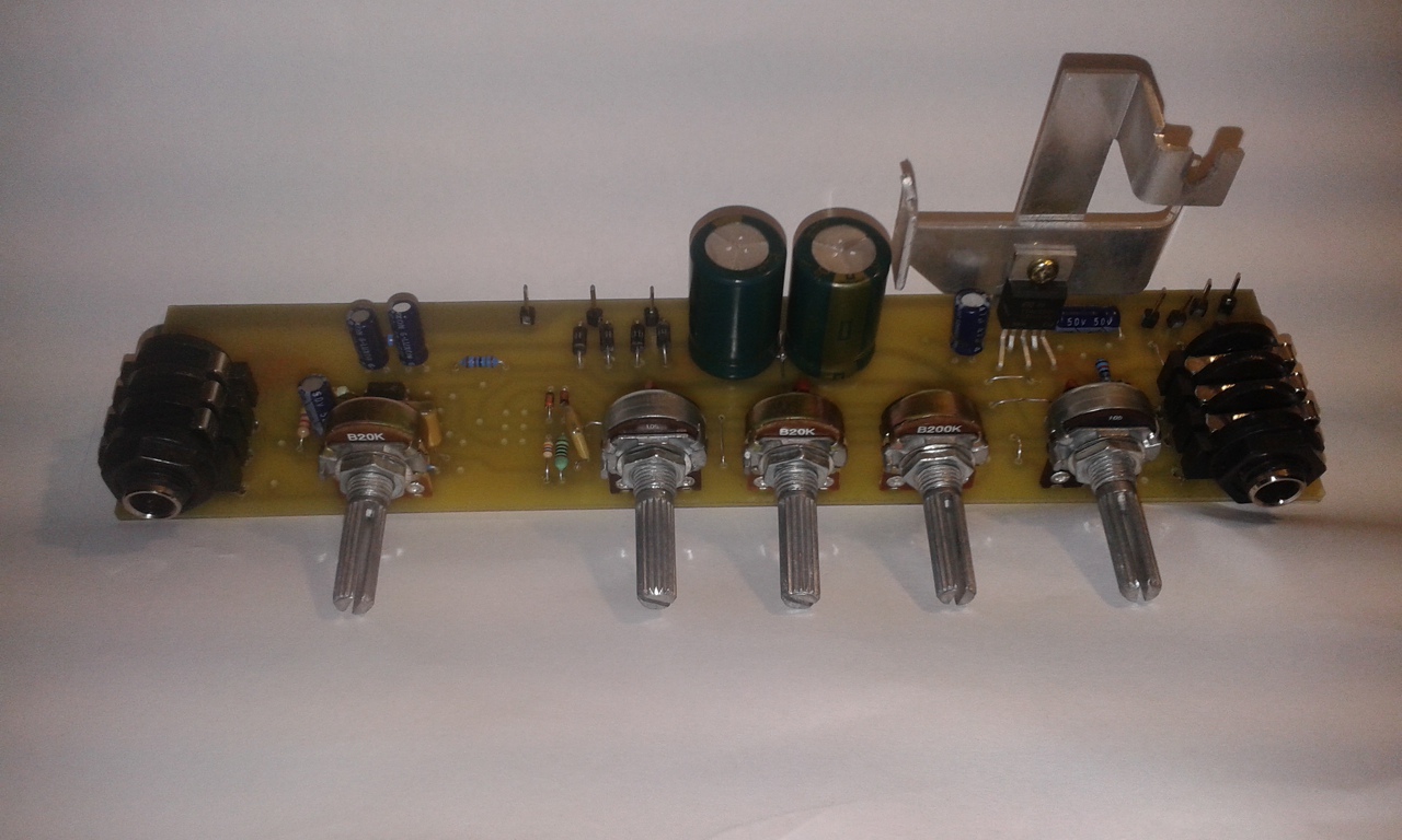 Kiforrasztod az R12 és R13 közös pontra (Vb) menő lábait. A két kiforrasztott láb közé bekötsz egy 5-10 kOhm körüli potenciométert, annak csúszkáját pedig a Vb pontra. Leveszed a gitáron annyira a hangerőt, hogy alig jelentkezzen a torzítás, a bekötött potenciométerrel megkeresed a legkisebb torzítást. Ha eltűnne a torzítás, akkor növeled a gitáron a hangerőt addig, hogy újra megjelenjen, majd újra állítod a bekötött potit. Addig játszod, amíg el nem éred a gitáron a maximális hangerőt. Ha marad torzítás, akkor az R3 értékét növeled. Ha megszűnt a torzítás, akkor az R12 és R13 cserélendő az új osztást biztosító értékekre. A hozzászólás módosítva: Márc 24, 2016