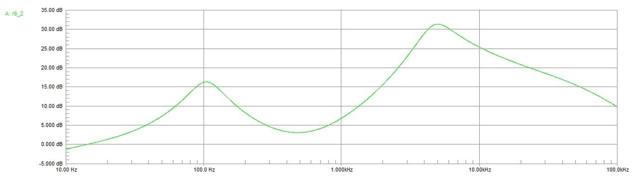 Leszimuláltam neked a hangszínszabályzót. Jó volt a megérzésem. Maxra tekert potiknál a közép 5 kHz-en több mint 15dB-t, a magas is 15dB felett erősít Ez elég a kásás hanghoz. Azonkívül a mély az 100 Hz környezetében dolgozik csak. Van még pár átviteli görbe.