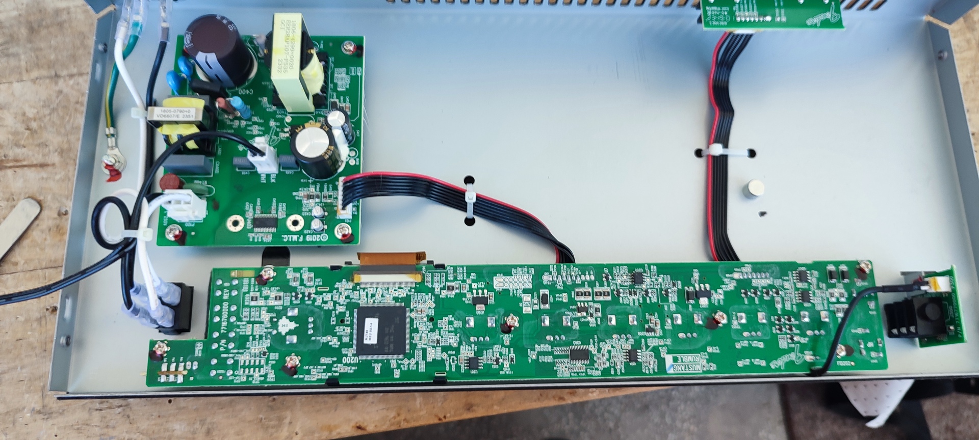 Hoztak hozzám egy Fender Mustang LT50 gitár kombót, azzal a hibával, hogy bekapcsolás után kb.5-10 percig jól működik a digitális kijelző és utána csíkos függőleges vonalak lesznek Én azt vettem észre, hogy 1-2 óra letelte után újra működik. A panel kivettem, a kijelző csatlakozójat újra forasztotam, a processzor holegfujoval újra lett mellegitve. A táp feszültségek jók,nem tudom