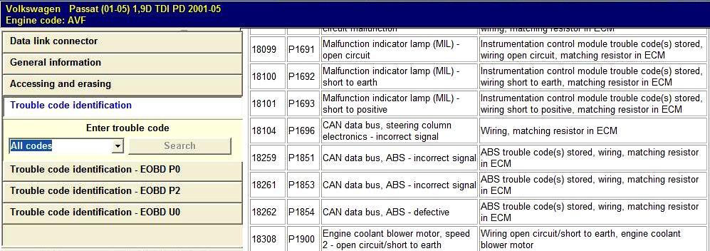 Lenne egy 1.9-es pdtdi AVF kódú VW Passat 2001-es és ezeket a hibákat olvastam ki belőle, és nem igazán találok a hibakódokról semmi normális leírást, ebben szeretnék segítséget kérni tőletek.