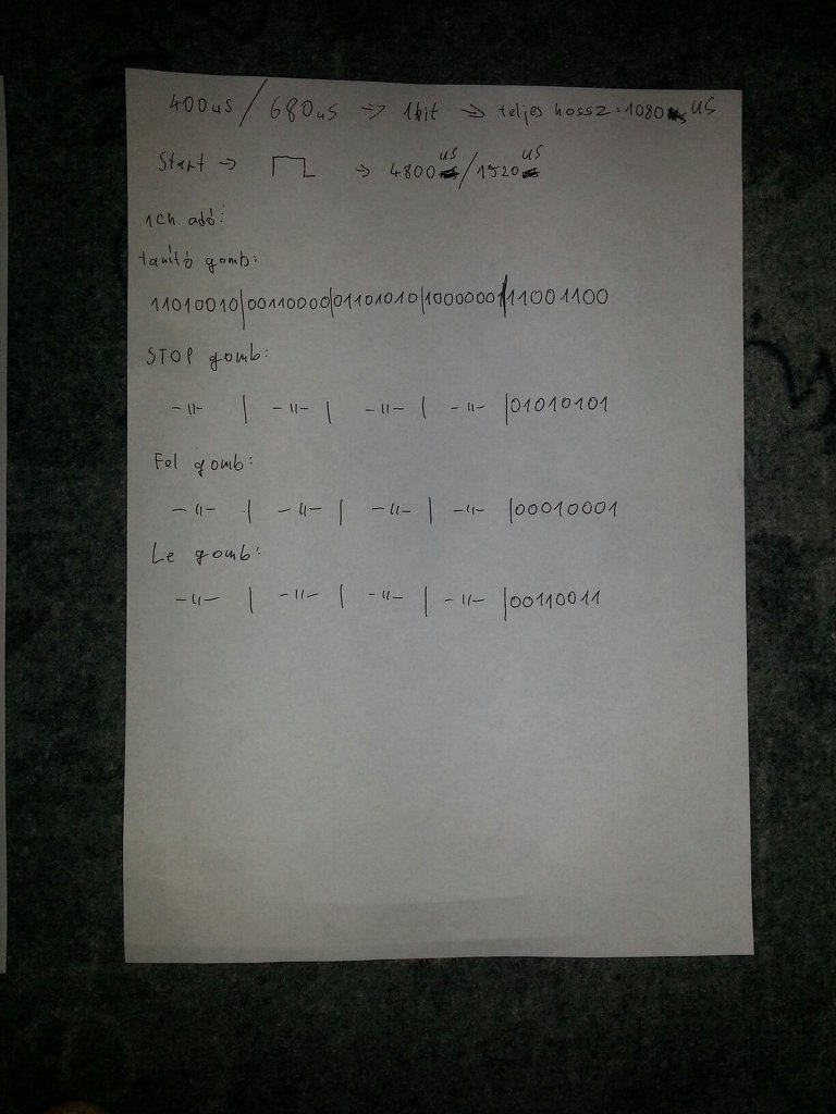 Éppen most akadtam össze, az általad említett motorral. Építenem kell egy átjárót, ami tanítható. A lényeg, hogy megoldható amit te akarsz csinálni, simán ellestem egy táv jeleit, arduinóval pedig küldöm ki, és a moci mocorog: Video Mivel a távvezérlő, és az arduinó is ugyanazt a jeleket küldi ki, így a motornak elég ha egy jelet megtanul. A kód felépítese, hogy van egy hosszú start bit, aztán 40 bit. Ebből ha jól sikerült visszafejtenem, az első 24 bit a távirányító azonosító, a következő 8 bit (több csatornás táv esetén a csatorna azonosító) az utolsó 8 bit pedig a nyomógombok( fel, le, stop, program gomb)