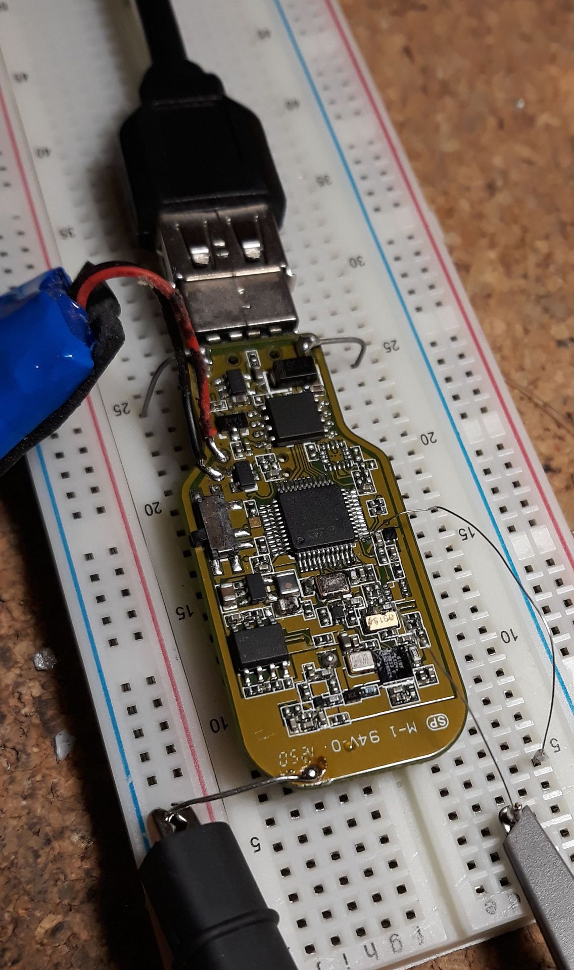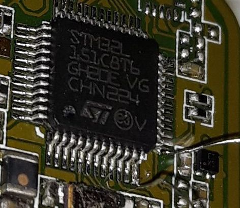 Jól eltelt azóta az idő... Kicsit előrébb vagyok, de a megoldás még messze van. Felraktam próbapadra, és a legegyszerűbben hozzáférhető USART2 TX-RX (16-17) lábakra forrasztottam kivezetést. Azok a huzalok 1,5-es sodrott vezető elemi szálai, azaz a legvékonyabb alkatrészlábaknál is vékonyabbak. Annyira apró ezen minden, hogy sanszos, hogy nem fogom megtalálni a GPS kommunikációt. A legvékonyabb Weller hegyemmel is lutri volt, meg is lepődtem, hogy elsőre sikerült. De ezek szélen voltak, a többi két pár, meg a többi között. Ez a két láb viszont nem nyert. Próbáltam egy-egy passzív alkatrészen jelet fogni odaérintéssel, de semmi használható egyelőre.